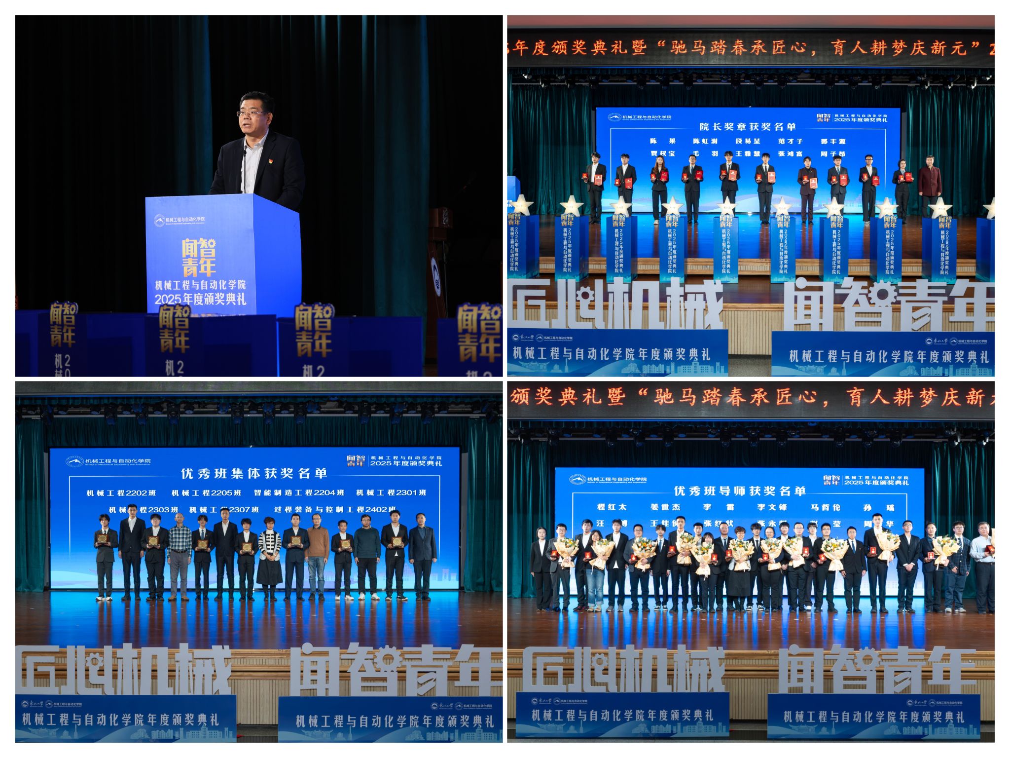 12月19日晚,机械工程取从动化学院“闻智青年”2025年度颁仪式正在学糊口动核心多功能厅举行。学校相关部分担任人、学院带领班子出席勾当。仪式由学院党委副、副院长(兼)孙坤掌管。